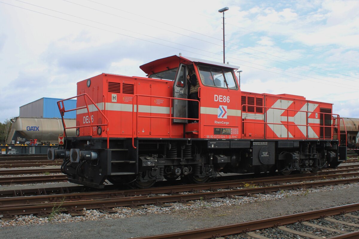 185 340 von "Rhein Cargo" war am 19. März 2020 mit einem Kesselwagenzug bei Übersee am Chiemsee unterwegs.