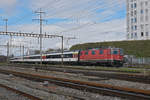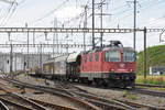 Doppeltraktion, mit den Loks 185 582-4 und 185 586-5 durchfährt den Bahnhof Pratteln.