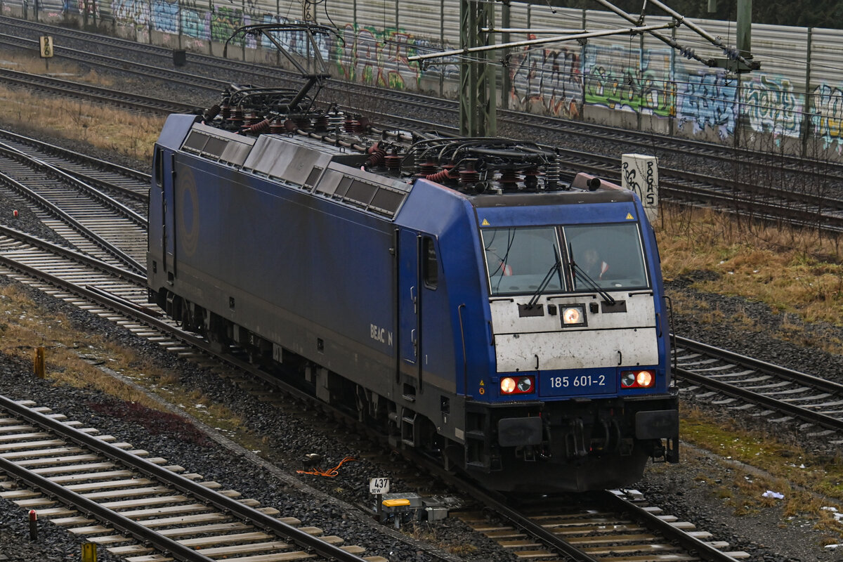 D-BRLL 185 601-2 rangierte am 11.02.2026 im Lübecker Hgbf (ALR). Kurze Zeit später fuhr 185 601-2 zum Lübecker-Skandinavienkai (ALSK) um dort einen KLV-Güterzug abzuholen.