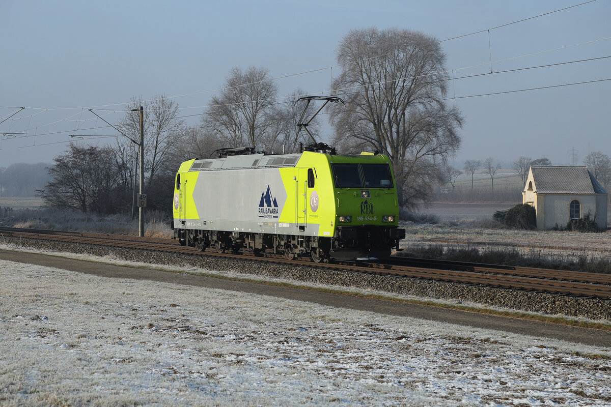 185 614 mit einem KLV Zug am 09.03.2011 bei Hörbach.