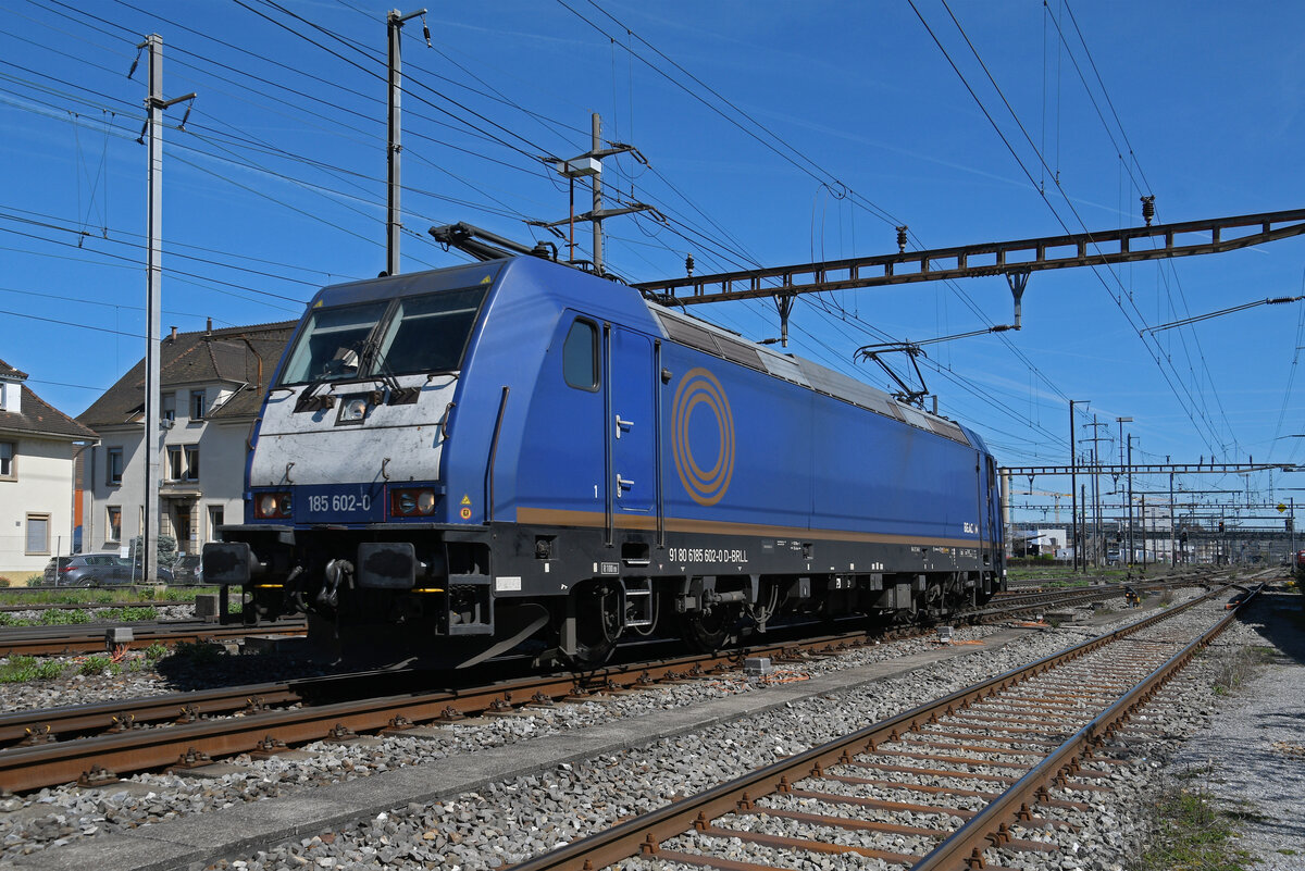 Lok 185 602-0 durchfährt am 07.04.2026 solo den Bahnhof Pratteln.