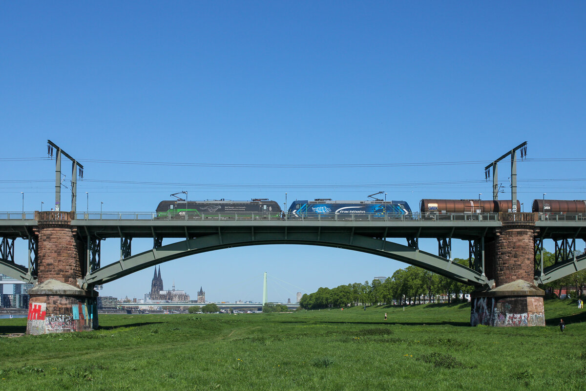 „Kein Besuch in Köln ohne ein Bild vom Dom" lautet ein Spruch meines Vaters, der sich immer wieder bewahrheitet. So auch am 22.04.2026 als 193 763 und 185 607-9 die Kölner Südbrücke überqueren.