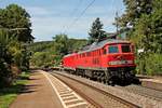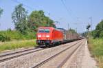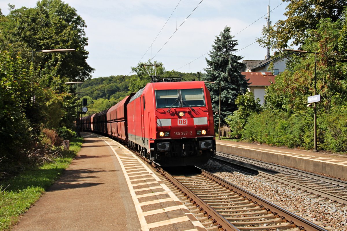 185 267-2 fuhr am 27.08.2015 zusammen mit 185 319-1 und einem schweren Erzzug nach Linz (AT) durch Etterzhausen in Richtung Regensburg.