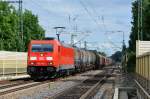 185 370-4 mit Kesselwagen nach Schwedt(Oder) bei der Durchfahrt im Haltepunkt Rostock-Kassebohm.17.06.2017