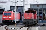 Zwei DB Cargo BR 185 bei der Durchfahrt in Rotkreuz am 03.01.2026