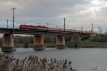 185 141-4 unterwegs mit Kesselwagen auf der Saalebrücke bei Halle-Wörmlitz Richtung Halle Rosengarten.