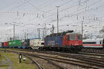 DB Lok 185 114-6 durchfährt den badischen Bahnhof.