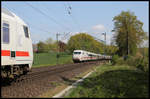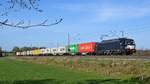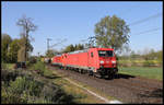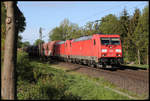 Mit einem schweren Kohle Zug am Haken erreichen hier am 5.5.2020 um 8.32 Uhr die 185276-3 und die dahinter laufende 185234-2 in Richtung Osnabrück fahrend den Ortsrand von Hasbergen.