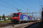 Doppeltraktion, mit den DB Loks 185 134-4 und 185 131-0 durchfährt den Bahnhof Pratteln.