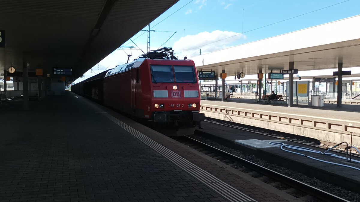 am 29.6.21 hatte DB Cargo 185 125 -2 Habbis und Rimv wagen am Haken hier bei der Durchfahrt in Basel Badischer Bahnhof Richtung Schweiz