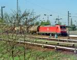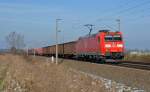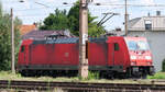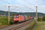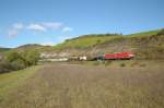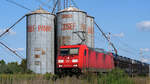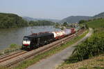 185 014 mit einem gemischten Güterzug am 23. Juli 2021 bei Lorch am Rhein.