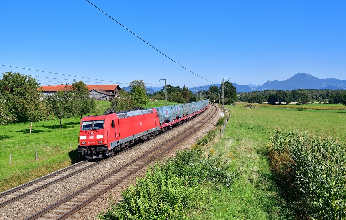185 396 mit einem Müllzug am 08.09.2021 bei Niederstraß.