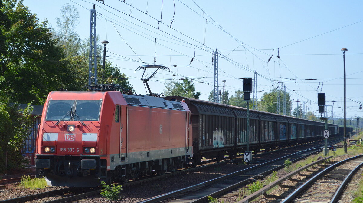 DB Cargo AG [D] mit "185 393-6" [NVR-Nummer: 91 80 6185 393-6 D-DB] und gemischtem Güterzug am 03.09.21 Berlin Hirschgarten