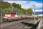 Ringsheim - 25. September 2021 : 185 045 mit einem Autozug unterwegs Richtung Süden. HINWEIS : Ich stand nicht im Gleisbereich. An dieser Stelle gibt es ein Holzladeplatz.
