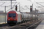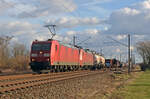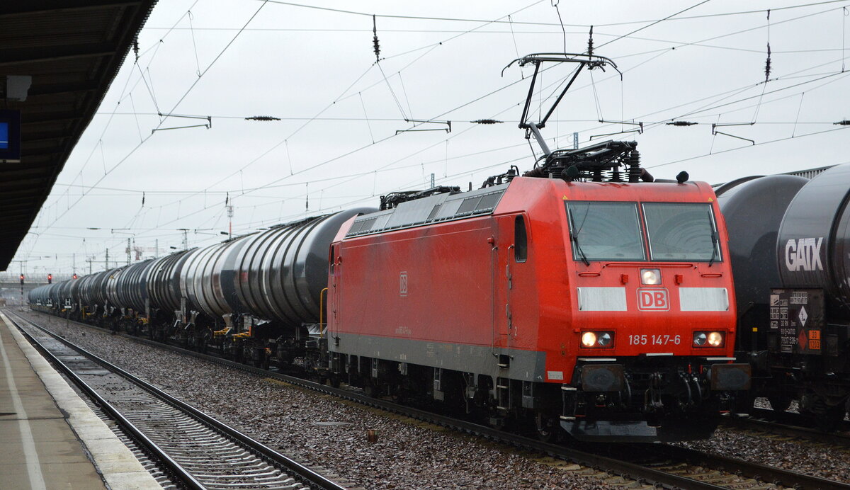 DB Cargo AG [D] mit "185 147-6" [NVR-Nummer: 91 80 6185 147-6 D-DB] und Kesselwagenzug (Benzin) am 08.02.22 Durchfahrt Bf.