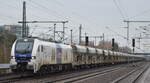 DB Cargo AG [D] mit  185 147-6  [NVR-Nummer: 91 80 6185 147-6 D-DB] und Kesselwagenzug (Benzin) am 08.02.22 Durchfahrt Bf. Flughafen BER - Terminal 5.