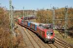 DB 185 083-0 mit einem gemischten Güterzug Richtung Saalfeld (S), am 20.02.2026 in Jena-Göschwitz.