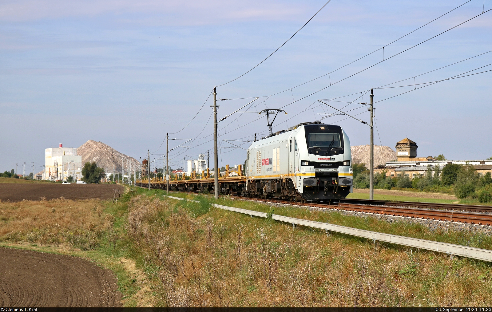Eine unerkannt gebliebene 185 durchquert mit Kesselwagen die Saaleaue zwischen Angersdorf und Halle-Wörmlitz Richtung Halle Rosengarten.