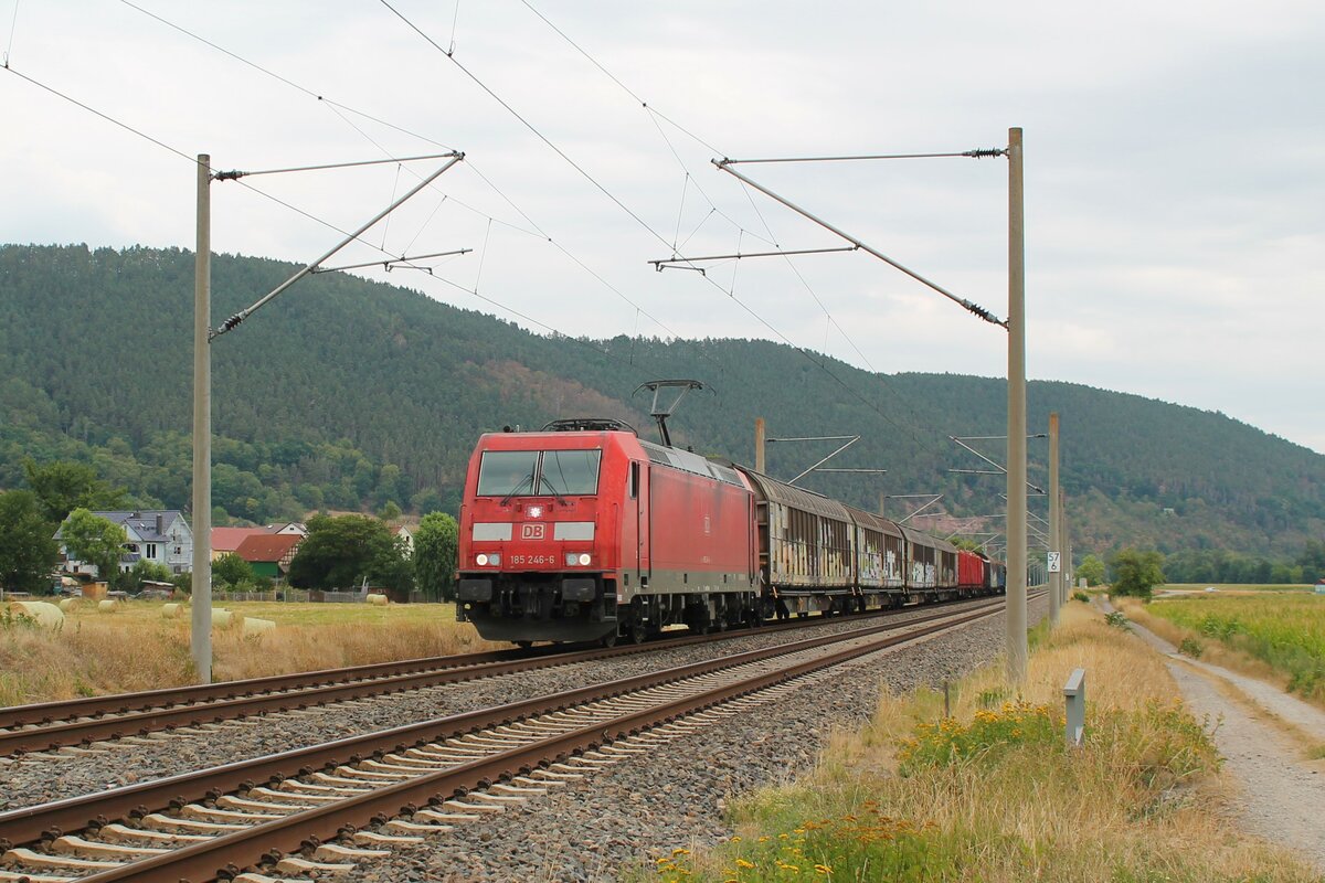 DB Cargo-186 246-6 mit einem Mischer am 13.8.2022 bei Etzelbach