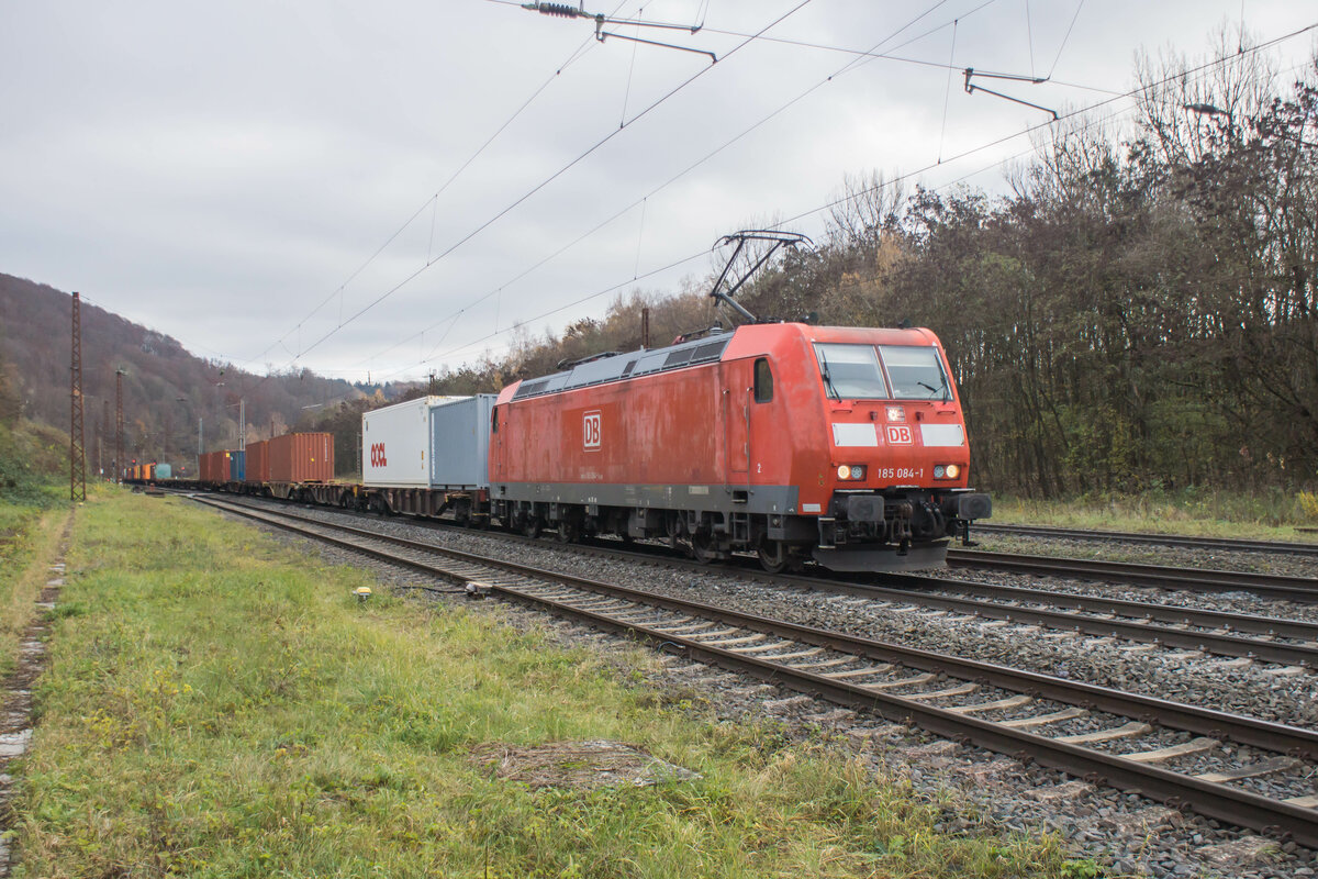 185 150 mit einem "KLV" bei der Ausfahrt aus Gemünden am 6.