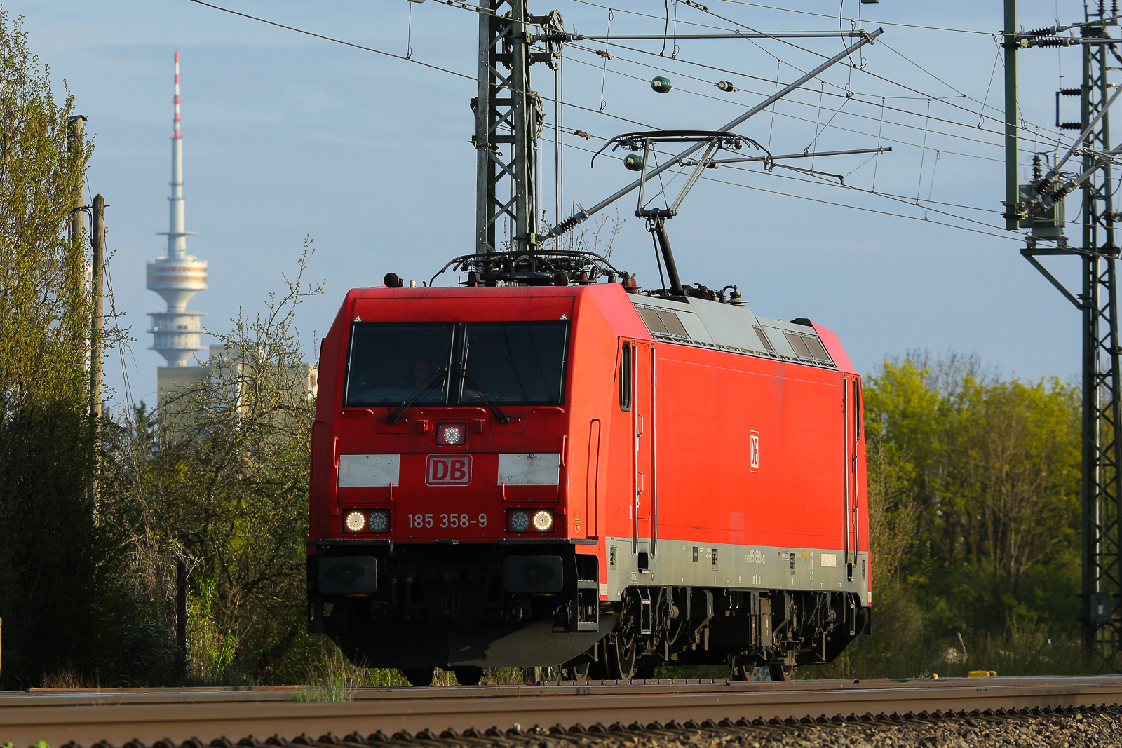 Auf geht's für 185 283-9 und ihren gemischten Anhang aus der Zugbildungsanlage (ZBA) Halle (Saale) in südlicher Richtung. Dabei passiert der Zug die Bahnsteige der Ostseite von Halle(Saale)Hbf, von denen das Foto entstand. 🧰 DB Cargo 🕓 28.3.2025 | 14:47 Uhr