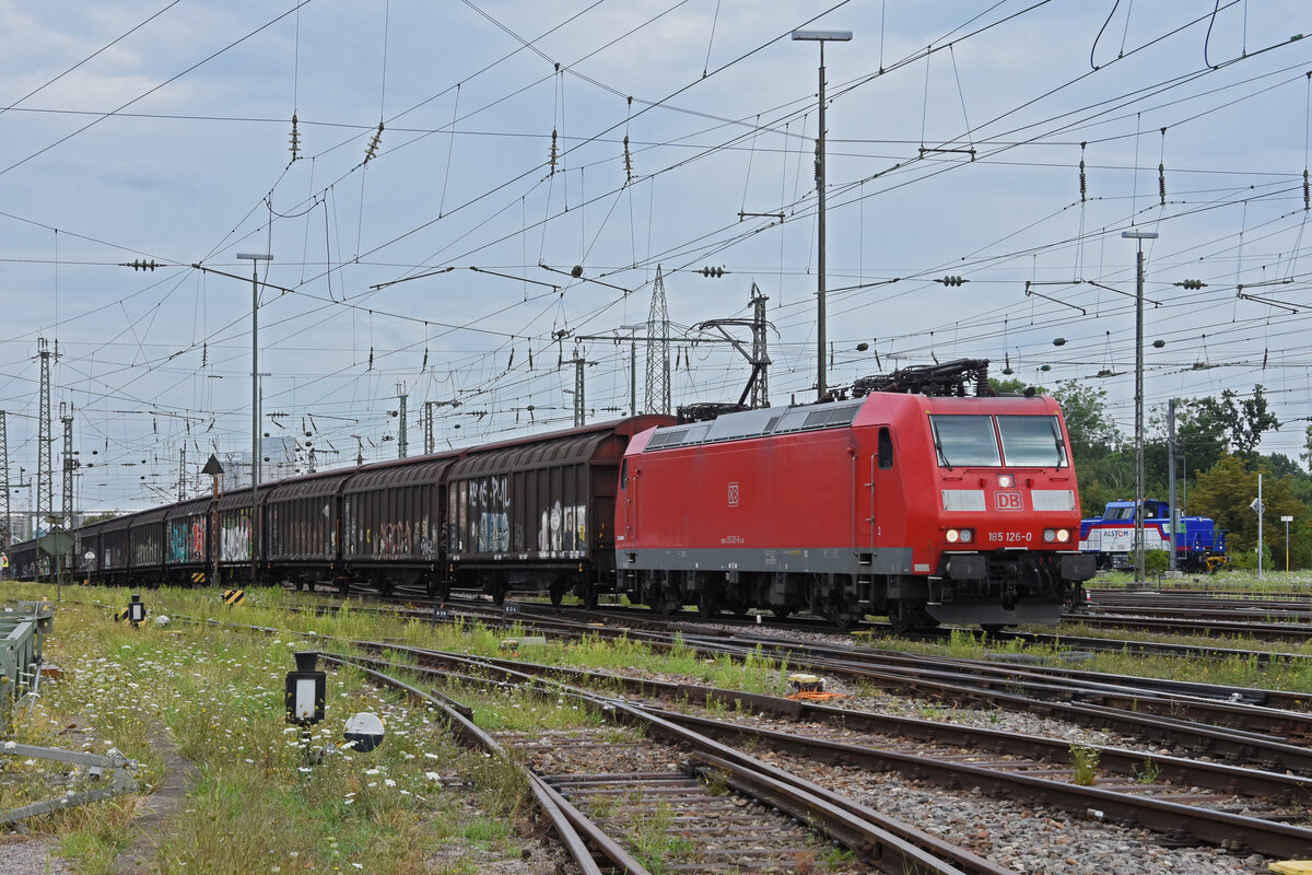 DB Lok 185 126-0 durchfährt am 29.07.2022 den badischen Bahnhof.