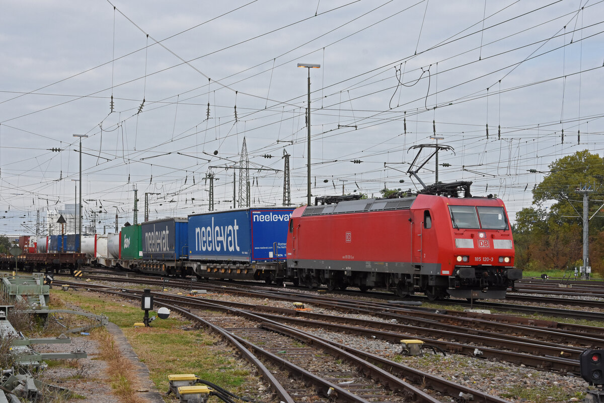 DB Lok 185 120-3 durchfährt am 06.10.2022 den badischen Bahnhof.