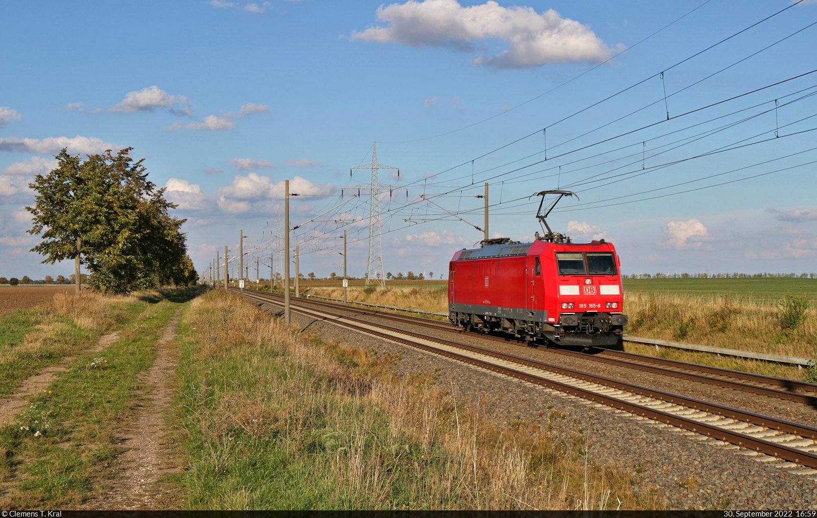 185 165-8 strebt einsam und allein Richtung Köthen. Nachgeschossen in Braschwitz.