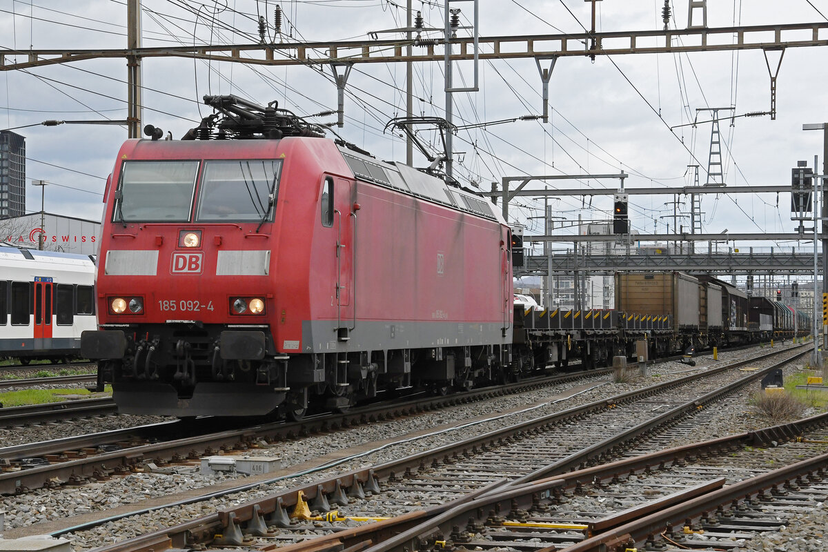 DB Lok 185 096-4 durchfährt am 31.03.2023 den Bahnhof Pratteln.