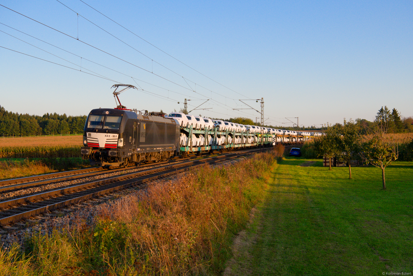 193 851 MRCE mit einem Autotransportzug bei Batzhausen Richtung Nürnberg, 10.10.2021