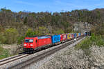 Am 06. April 2024 passierte die 185 220 mit einem bunt beladenen KLV-Zug nach Norddeutschland das frühlingshafte Altmühltal. Die Aufnahme entstand am sogenannten Esslinger Tunnel.