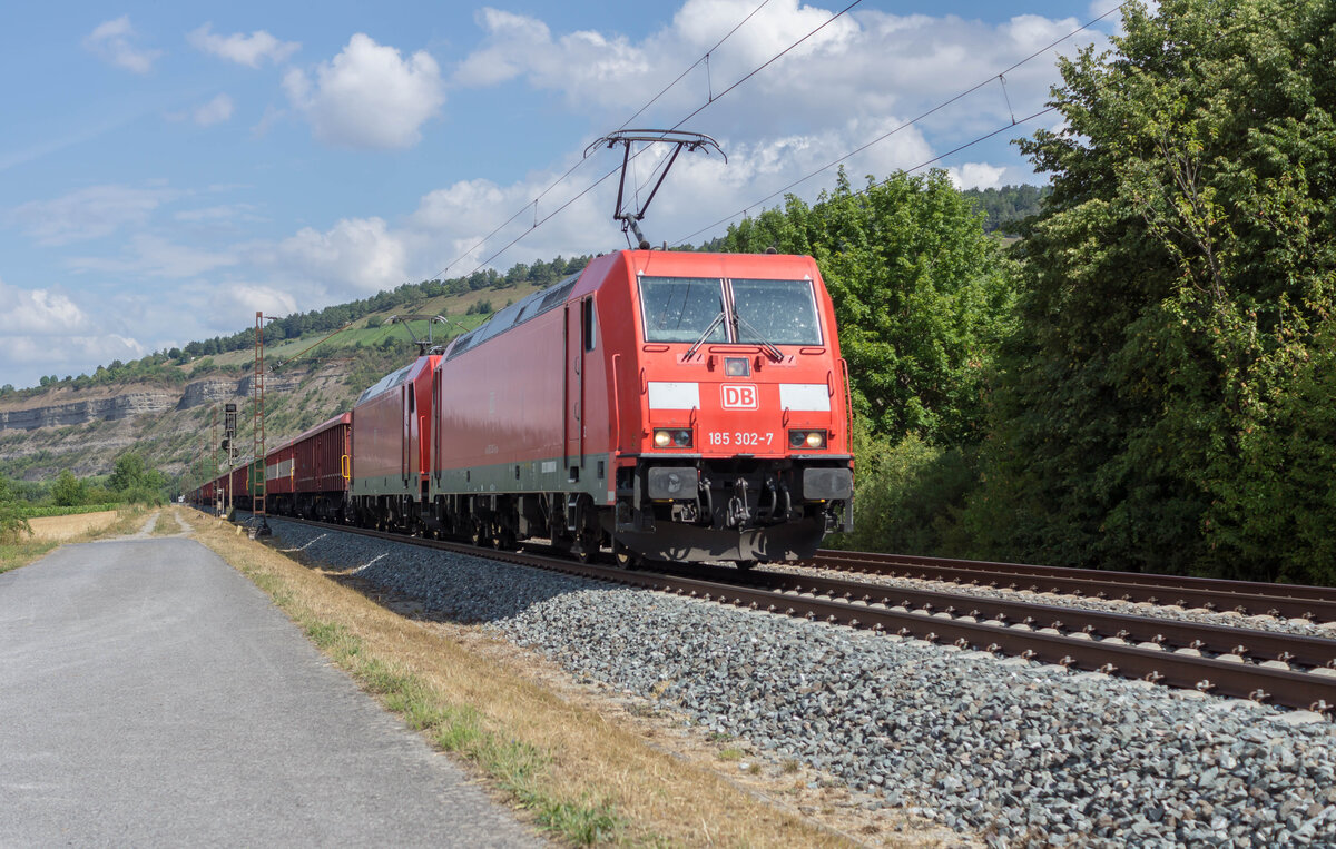 185 313 DB Cargo und eine weitere 185 mit einem leeren Kohlezug bei Hirschaid Richtung Bamberg, 07.05.2021
