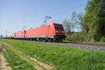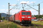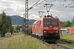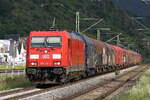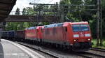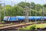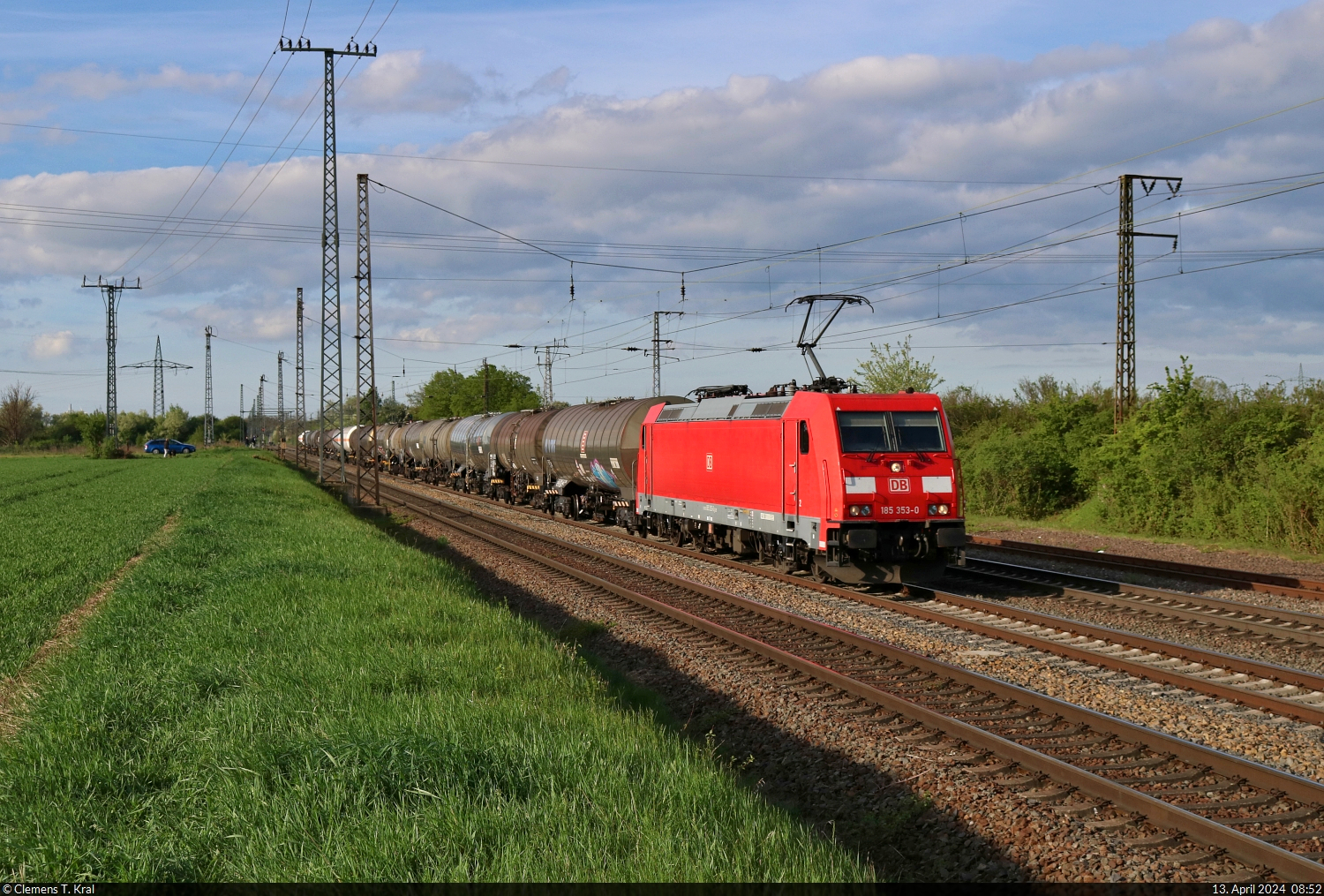 185 353-0 führt einen Kesselzug durch Großkorbetha Richtung Halle (Saale).