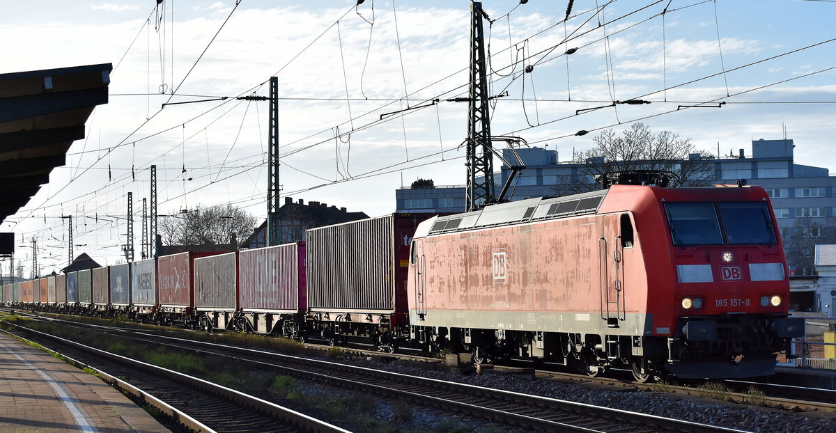 DB Cargo AG, Mainz [D] mit ihrer "185 151-8" [NVR-Nummer: 91 80 6185 151-8 D-DB] und einem Containerzug am 26.11.24 Höhe Bahnhof Magdeburg Neustadt.