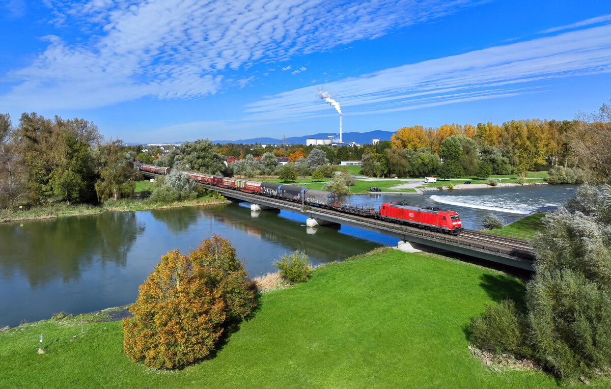 185 047 mit einem Güterzug am 16.10.2024 bei Plattling.