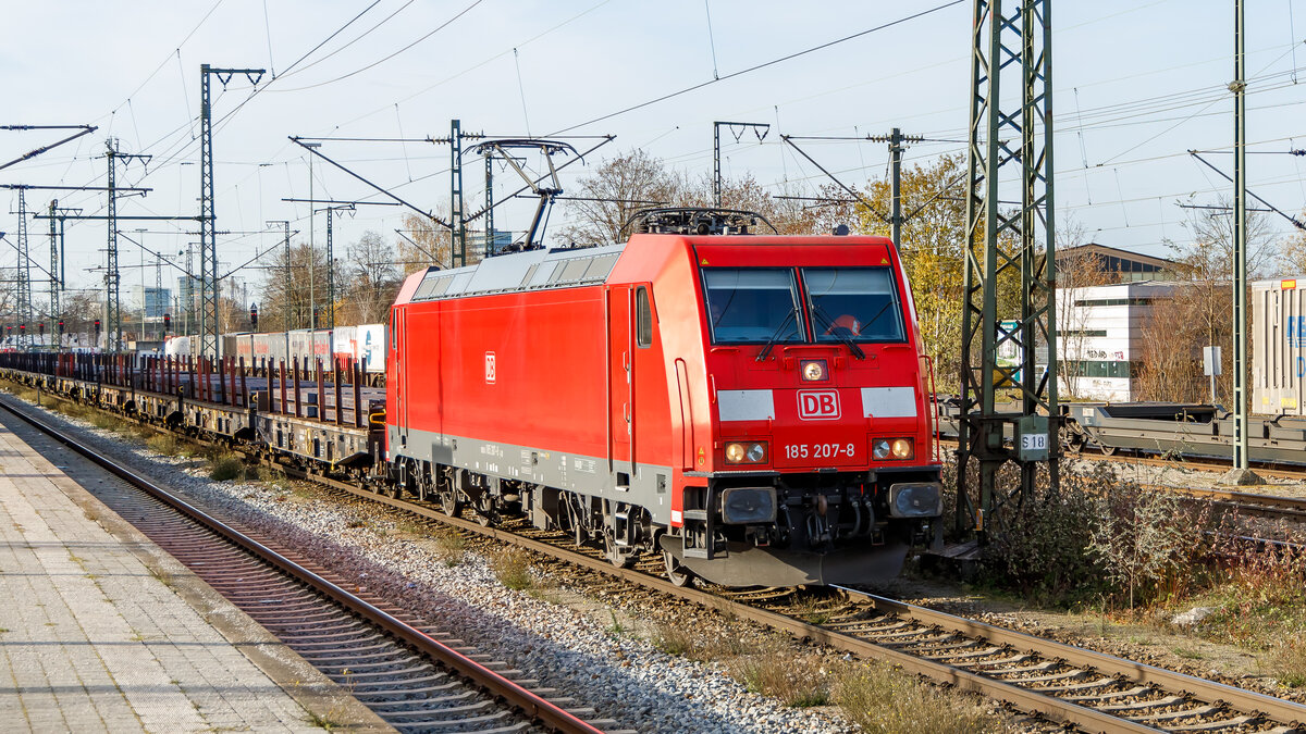 91 80 6185 207 mit einem Güterzug in München-Trudering am 24.11.2024.