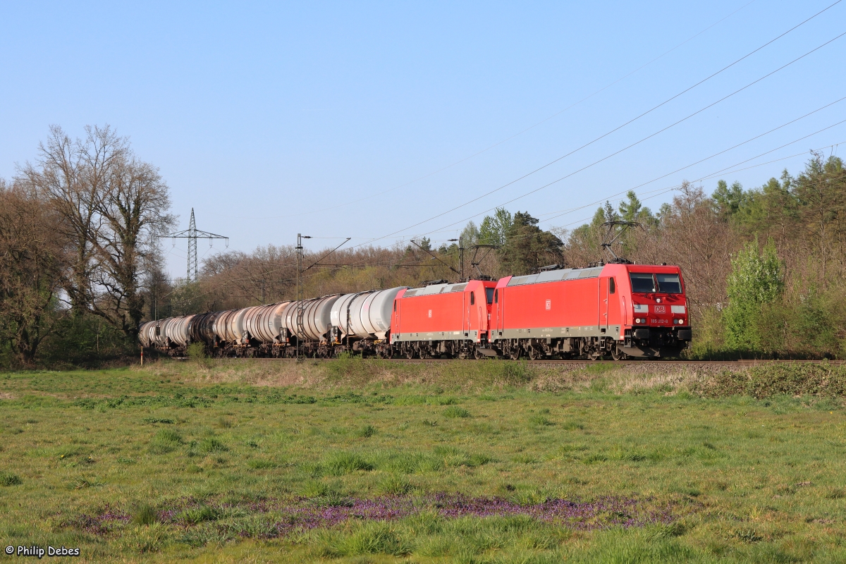 185 212-8 (DB) und 185 357-1 (DB) mit einem Kesselzug in Ratingen Lintorf, 4. April 2025