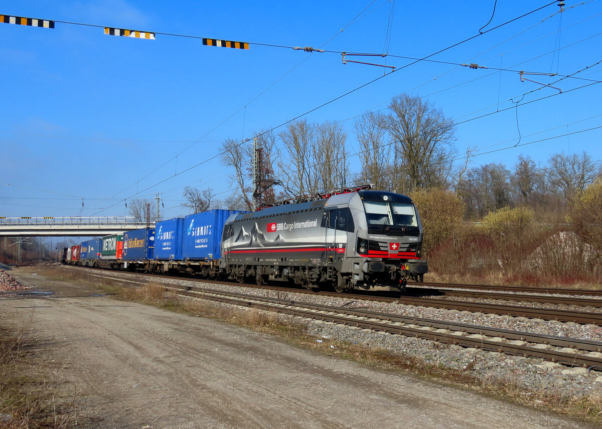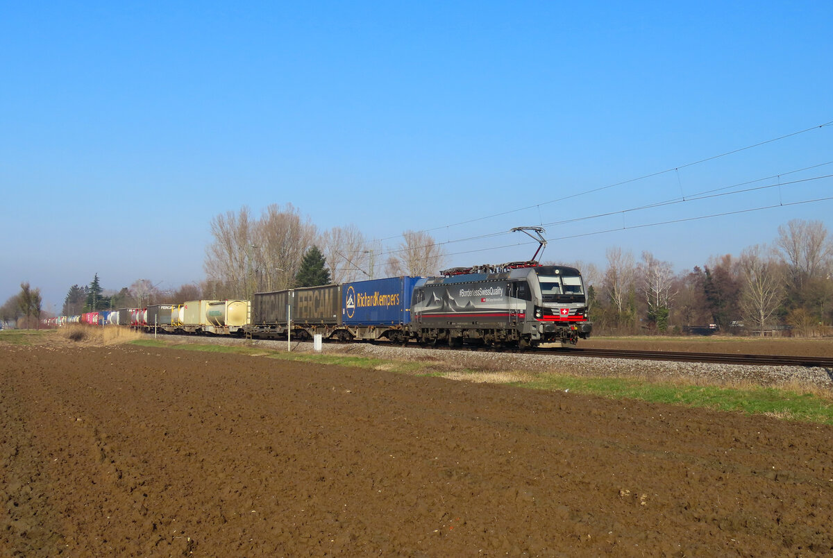 Riegel - 5. Februar 2025 : 185 006 mit einem Gemichten in Richtung Schweiz unterwegs