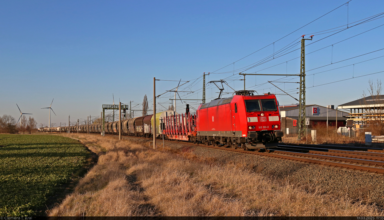 185 615 ATLU mit einem Containerzug bei Postbauer-Heng Richtung Regensburg, 07.03.2022