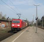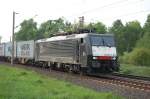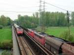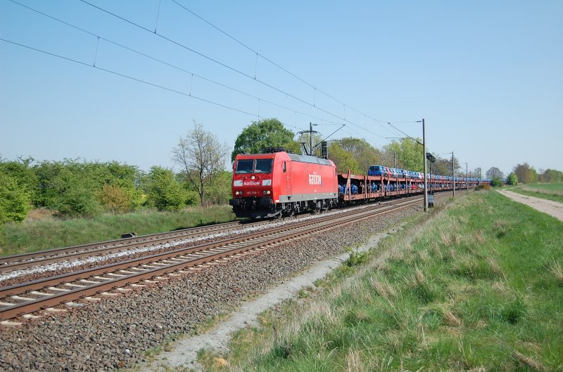 185 159-1 Railion mit Autozug am 21.04.2009 kurz vor Überquerung des Mittellandkanals bei Peine