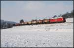 185 296 DB Cargo mit einem LKW-Walter KLV-Zug bei Ratzenwinden Richtung Treuchtlingen, 23.09.2021