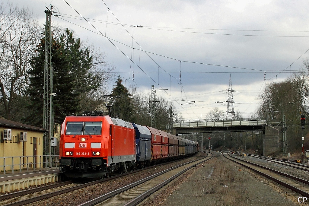 185 352-2 durchfährt mit einem Schüttgutzug Hochstadt-Markzeuln. (27.3.2010)