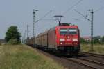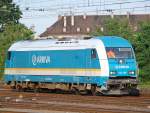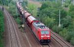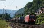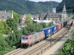 The BR185.260 hauls an intermodal train from Italy, here during its transit in München Pasing.