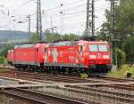 185 142-7 mit der Schweiz Werbung zieht am 28.12.2011 einen Kohlezug durch Jägersfreude
