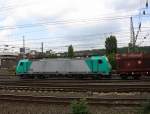 185 183-1 DB kommt als Lokzug die Kohlscheider-Rampe hoch aus Richtung Neuss und fährt in Richtung Aachen-West und fährt durch Kohlscheid bei schönem Sonnenschein am 6.8.2014.