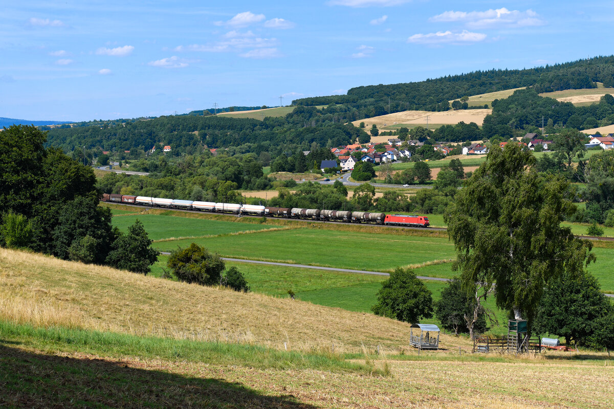185 256-5 DB kommt aus Richtung Aachen-West mit einem langen MSC-Containerzug aus Antwerpen-Berendrecht(B) nach Weil Am Rhein(D) und fährt durch Aachen-Schanz in Richtung Aachen-Hbf,Aachen-Rothe-Erde,Stolberg-Hbf(Rheinland)Eschweiler-Hbf,Langerwehe,Düren,Merzenich,Buir,Horrem,Kerpen-Köln-Ehrenfeld,Köln-West,Köln-Süd. Bei Sonne und Regenwolken am Nachmittag vom 14.9.2015.