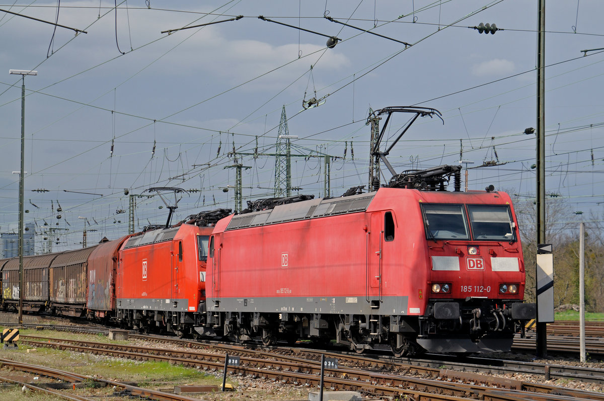 Doppeltraktion mit dem DB Lok's 185 112-0 und 185 116-1, durchfahren den Badischen Bahnhof. Die Aufnahme stammt vom 04.04.2016.