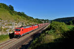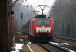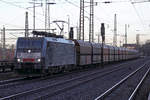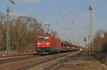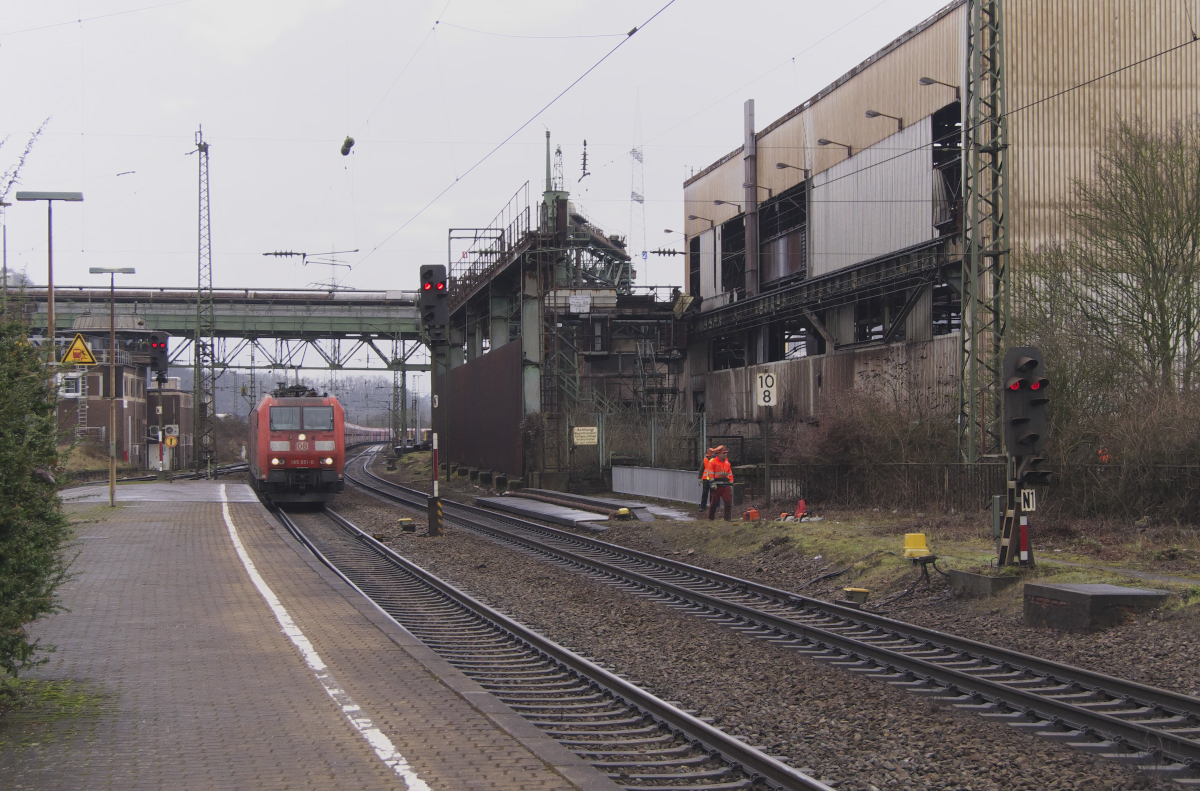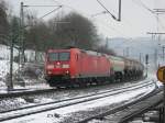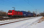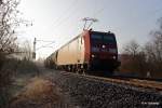 Wagen ohne Ende. 185 051 leistet Vorspann, dahinter eine weitere 185er und am Schluss noch Schubunterstützung durch eine weitere 185er. Der Kohlenzug wird wohl zum Anschluss Göttelborn/Kraftwerk Weiher unterwegs sein. 03.02.2017 Bahnstrecke 3230 in Völklingen.