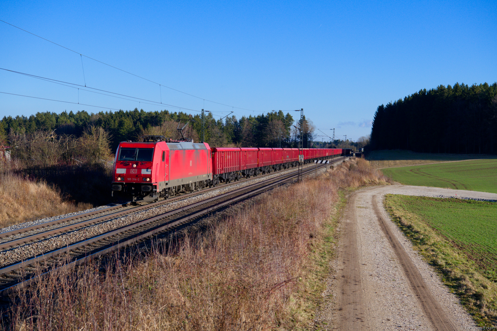185 209 und 185 204. Da kann man sehen, es war die Coca Cola Lok vom Weihnachtszug. 16.3.26 bei Zorneding.