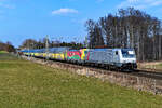 An einem frostigen Wintertag setzt der KLV-Zug der Miratrans Transport Spedycja Sp. z o.o. mit 189 803-0 (Siemens ES64F4-803) seine Fahrt in der Zugbildungsanlage (ZBA) Halle (Saale) Richtung Bitterfeld fort und wurde mit wenig Gefühl in den Fingern von der Berliner Brücke fotografiert.